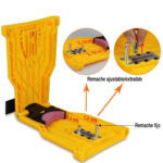 MotoFilo tiene 2 pines, uno de los cuales es ajustable y desmontable, permitiendo una compatibilidad perfecta con casi todos los tipos de motosierras. Independientemente de la distancia entre los dos agujeros en la barra de la motosierra, ya sea un solo agujero o dos agujeros, MotoFilo puede ser compatible. Levanta las piedras de afilar para quitar la desgastada, luego reemplázala con una nueva, y puedes continuar afilando.