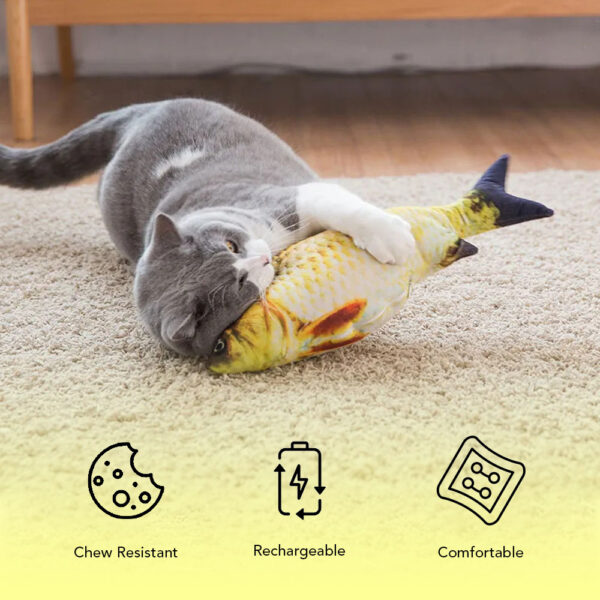 PezVivo es un juguete realista para gatos activado por movimiento, diseñado para imitar el aspecto y el movimiento de un pez real. Una vez que tu gato lo toca, empieza a moverse como una presa recién capturada—activando sus instintos naturales de caza y manteniéndolos mental y físicamente activos.