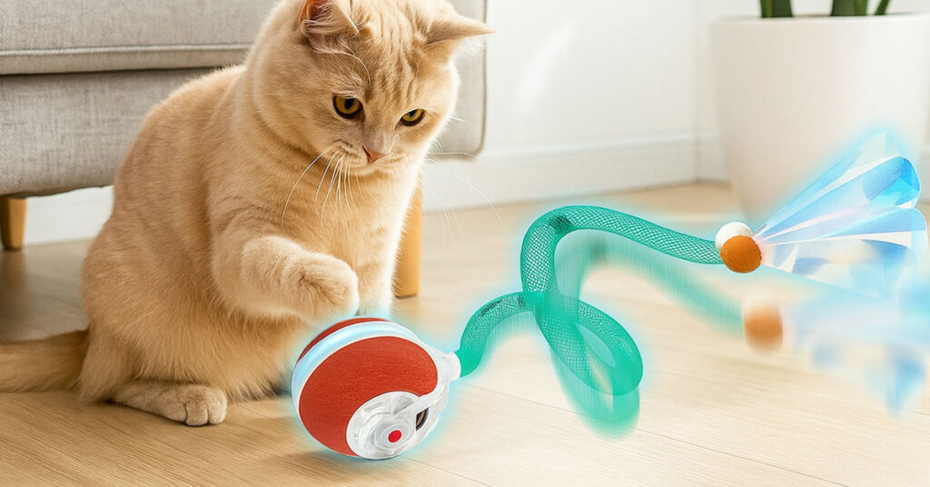 Esas pequeñas plumas reflectantes no son solo decoración – son imanes para gatos. La forma en que la luz las atrapa y rebota imita el destello de escamas o alas de pájaros que los gatos están programados para notar. Muchos padres de gatos reportan que sus gatos quedan completamente hipnotizados, siguiendo cada destello con enfoque láser.