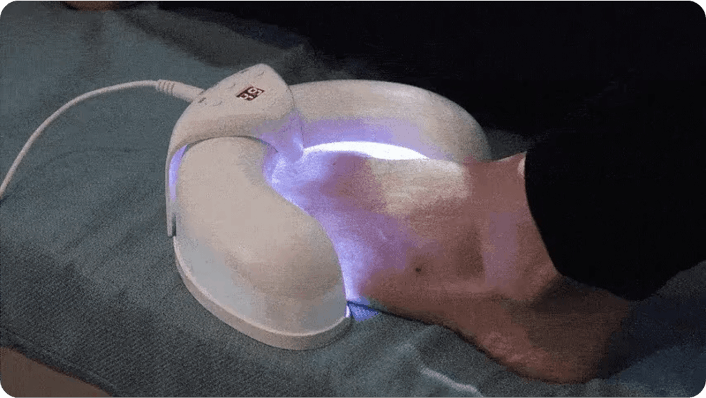 Es un dispositivo para usar en casa que utiliza terapia láser de baja intensidad combinada con calor suave para tratar los hongos en las uñas, actuando directamente sobre el lecho ungueal donde residen los hongos.