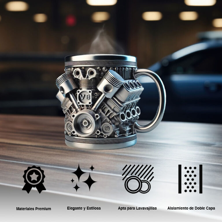 "Esta taza se ve increíble y se siente sólida en la mano. El aislamiento de doble capa realmente funciona, manteniendo mis bebidas calientes durante horas. También es fácil de limpiar, lo cual es una ventaja. Si te gustan los coches y la ingeniería, esta es una mezcla perfecta de estilo y función." - Alejandro S.