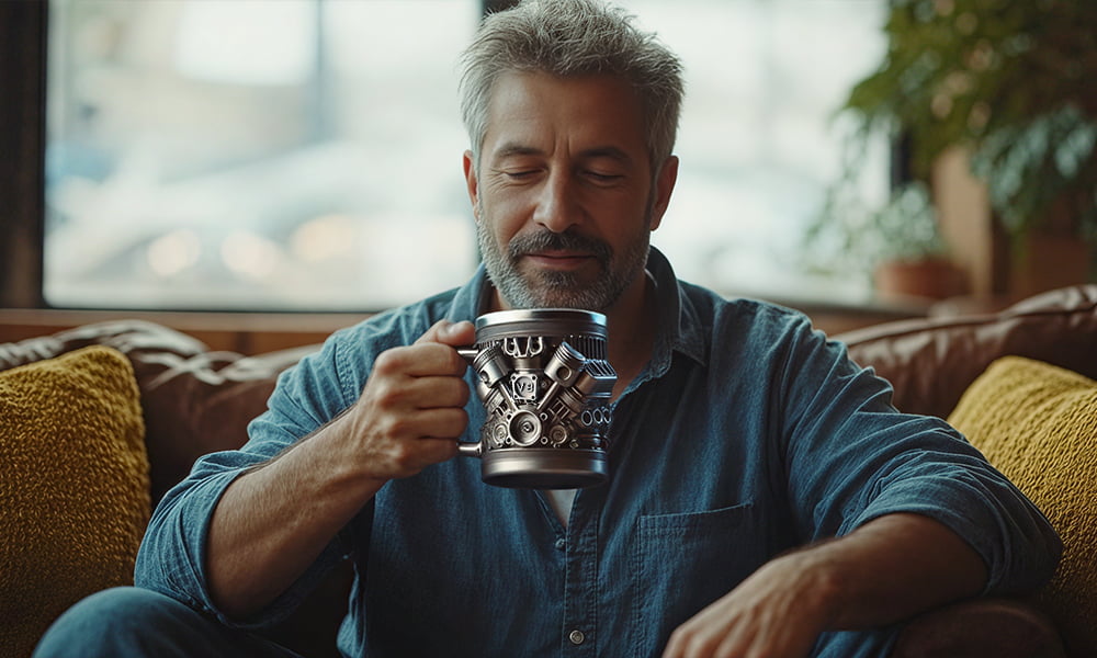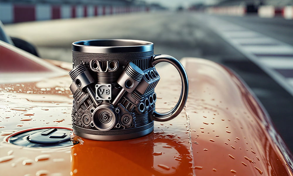 Entonces, ¿estás listo para acelerar tu rutina matutina? Con cada sorbo, siente cómo la potencia de los motores V6 y V8 cobra vida. ¡Deja que tu pasión por los coches impulse tu día!