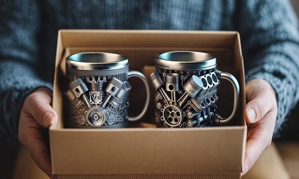 Dentro había dos exquisitas tazas modelo de motores V6 y V8. A primera vista, pensé que era solo una curiosidad, pero cuando las vi con cuidado, supe que era algo más.